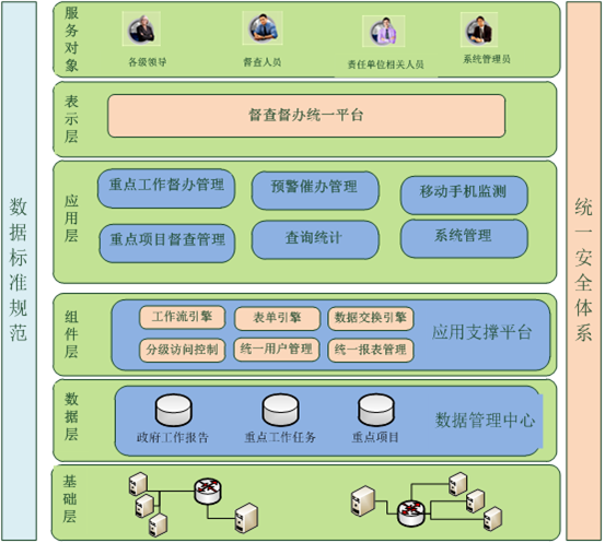 以政府精细化管理、监督、考核、问效四位一体的为手段,以提高机关执行力为目标,大力打造高效廉洁的政府,把重点工作与重点任务(项目)督查督办电子监察等功能融为一体,打造一个集中的信息平台,实现对重点工作和重点任务(项目)进行交办、办理、进度监督、结果反馈,从而实现实时督查督办电子监察。以达到精细化管理,跟踪问效。